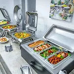 The on-site restaurant at Mera Brise caters to a variety of tastes, offering a selection of Italian and international dishes. Additionally, guests can look forward to starting their day with a delicious free breakfast buffet and can enjoy the convenience of a coffee shop/cafe for light snacks and beverages throughout the day.